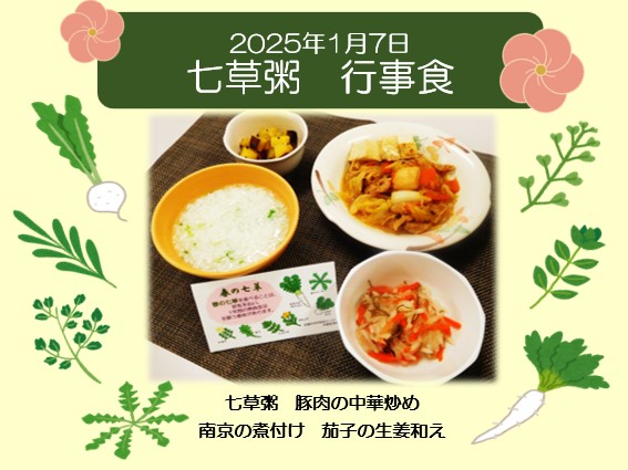本日は、人日の節句(じんじつのせっく)で、七草粥をご用意しました。