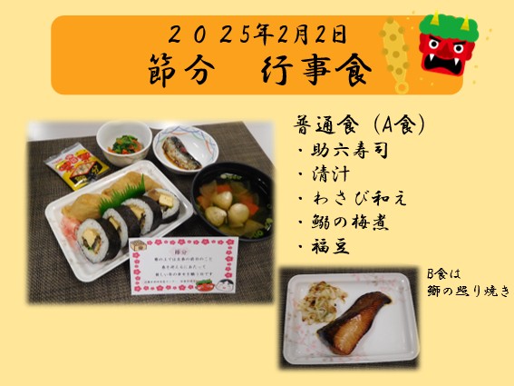 心も体も元気で過ごせるように、行事食では縁起の良い食材を取り入れました。